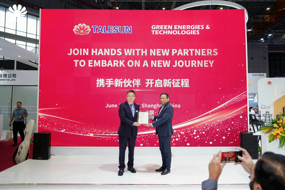 授獎(jiǎng)儀式結(jié)束后,騰暉光伏舉行了對巴基斯坦GREEN ENERGIES & TECHNOLOGIES的代理授權(quán)儀式。該公司在當(dāng)?shù)啬茉搭I(lǐng)域擁有豐富的資源和廣泛的市場渠道,雙方將攜手共進(jìn),共同推動巴基斯坦光伏產(chǎn)業(yè)的發(fā)展,為當(dāng)?shù)靥峁┣鍧崱⒖沙掷m(xù)的能源解決方案。