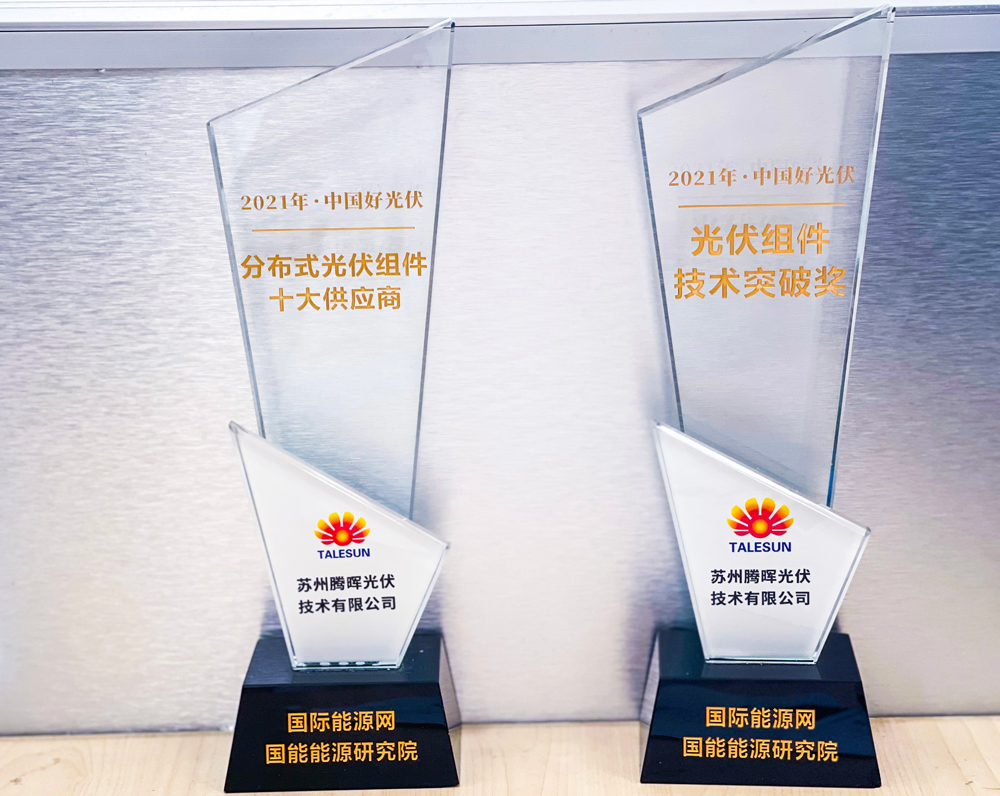 7月14-15日,由江蘇省光伏產(chǎn)業(yè)協(xié)會(huì)主辦的“2022江蘇光伏產(chǎn)業(yè)發(fā)展論壇”于南京順利召開(kāi)。騰暉光伏應(yīng)邀出席此次論壇,與來(lái)自政、產(chǎn)、學(xué)、研的各界代表和光伏企業(yè)的代表一起,見(jiàn)證江蘇省光伏產(chǎn)業(yè)的蓬勃發(fā)展。會(huì)上,騰暉光伏榮獲中國(guó)好光伏“2021年度分布式光伏組件十大供應(yīng)商獎(jiǎng)”、“2021年度光伏組件技術(shù)突破獎(jiǎng)”和“2021年度江蘇省光伏科學(xué)技術(shù)獎(jiǎng)”三項(xiàng)大獎(jiǎng)。
