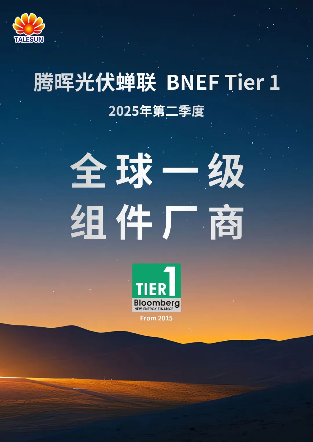 2025年6月2日,全球權(quán)威研究機構(gòu)彭博新能源財經(jīng)(BloombergNEF,簡稱BNEF)正式公布2025年第二季度Tier 1全球一級光伏組件制造商榜單。在光伏行業(yè)競爭白熱化、新規(guī)嚴苛施壓的大背景下,騰暉光伏憑借卓越的技術(shù)實力、穩(wěn)健的財務(wù)表現(xiàn)以及前瞻性的全球化市場布局,再度榮登該榜單,成為新規(guī)實施后為數(shù)不多持續(xù)入圍的光伏企業(yè)之一。此次蟬聯(lián),不僅是對騰暉光伏行業(yè)領(lǐng)先地位的有力印證,更彰顯了其在高門檻、嚴標準下的非凡綜合競爭力。