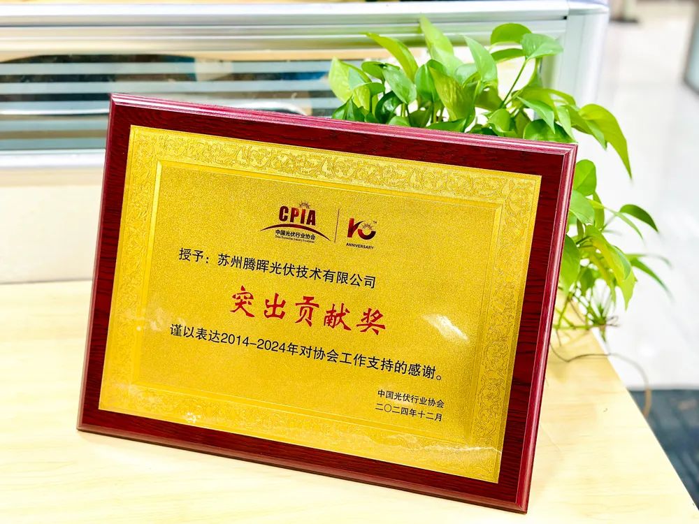從中國光伏行業(yè)協(xié)會(huì)傳來喜訊,騰暉光伏憑借其2014至2024年間在光伏領(lǐng)域的卓越貢獻(xiàn),榮耀摘得“突出貢獻(xiàn)獎(jiǎng)”。這一榮譽(yù)不僅彰顯了騰暉在過去十年間在光伏技術(shù)創(chuàng)新、市場(chǎng)拓展以及行業(yè)規(guī)范化進(jìn)程中所取得的輝煌成就,更是對(duì)公司長(zhǎng)期積極貢獻(xiàn)于全球碳中和目標(biāo)實(shí)現(xiàn)的深度肯定與高度贊譽(yù)。
