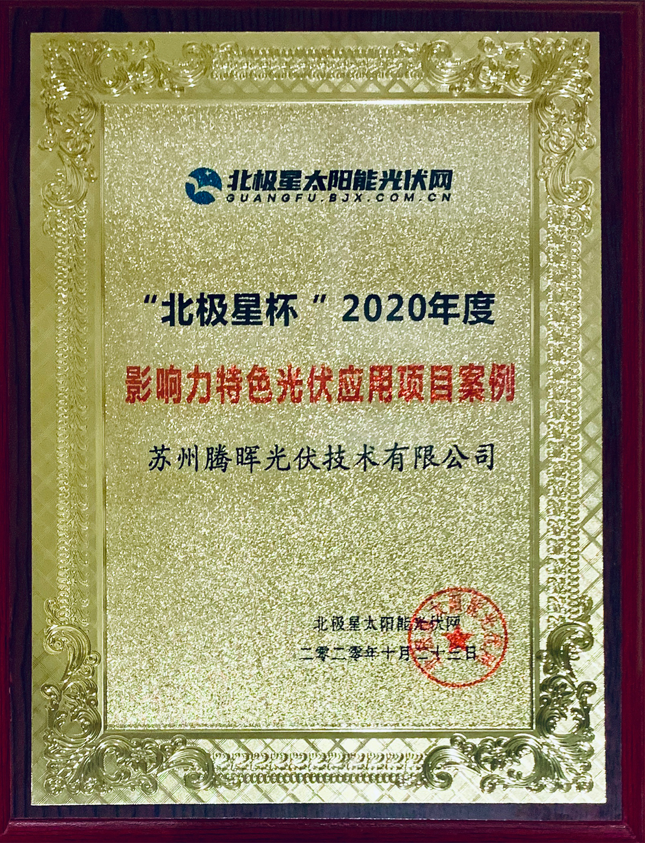 2020年10月23日,“北極星杯”2020光伏影響力品牌評選頒獎典禮在北京舉辦,經(jīng)過激烈角逐,騰暉光伏從260多家入圍企業(yè)中脫穎而出,榮膺2020影響力光伏電池/組件品牌,此外,阿根廷高查瑞315 MW光伏電站項目榮獲“影響力特色光伏應用項目案例獎”。