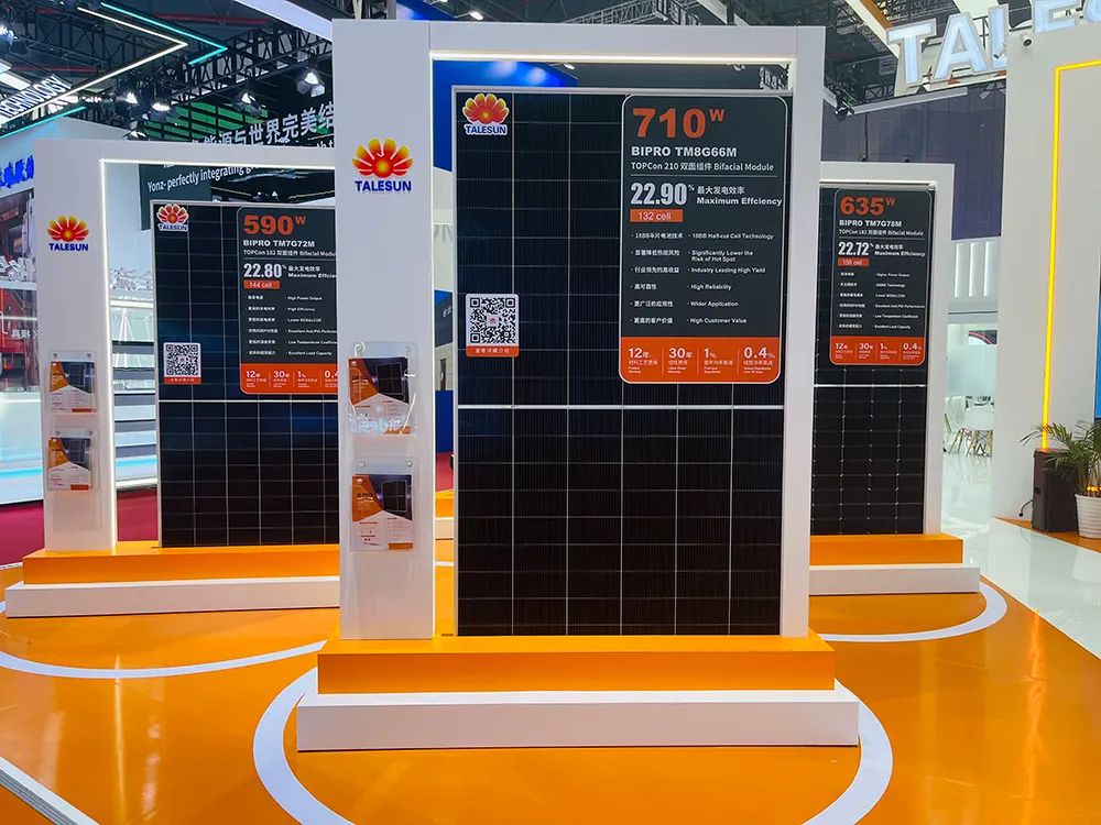 騰暉光伏自成立伊始,一直致力于推動(dòng)光伏技術(shù)的進(jìn)步和應(yīng)用。在本次SNEC展會(huì)上,騰暉光伏帶來的全系TOPCon組件不僅功率和效率出眾,而且產(chǎn)品線豐富,涵蓋了多種不同功率和尺寸的組件。這些組件不僅適用于大型地面電站,也適用于工商業(yè)和戶用光伏市場。其中,TM8G66M組件最高功率可達(dá)710W,轉(zhuǎn)換效率高達(dá)22.9%,達(dá)到業(yè)內(nèi)一線標(biāo)準(zhǔn)。此外,騰暉光伏還針對(duì)不同的應(yīng)用場景,提供了定制化的解決方案,以滿足客戶的多樣化需求。