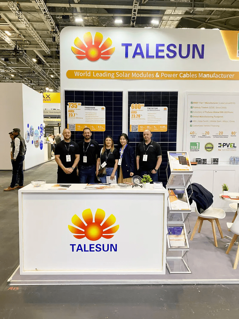 April 2, 2025?– The global photovoltaic and energy storage industry gathered at London’s ExCeL International Exhibition Centre for?Solar & Storage Live London 2025. Talesun Solar showcased its high-efficiency TOPCon 600W and HJT 735W photovoltaic modules, presenting the company’s latest achievements in the renewable energy sector. The exhibition attracted attention from industry experts, investors, and clients worldwide.